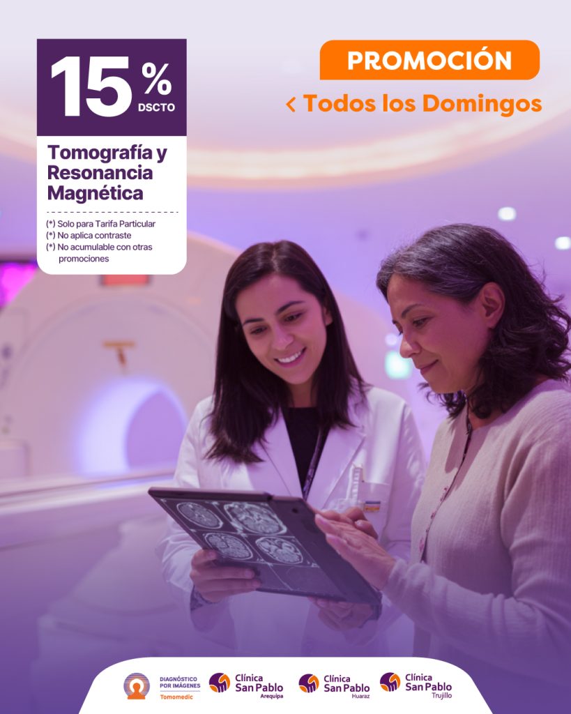 Válido solo para sedes Clínica San Pablo Arequipa, Clínica San Pablo Trujillo y Clínica San Pablo Huaraz.